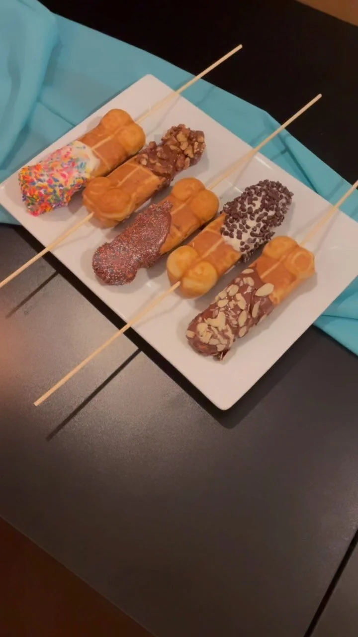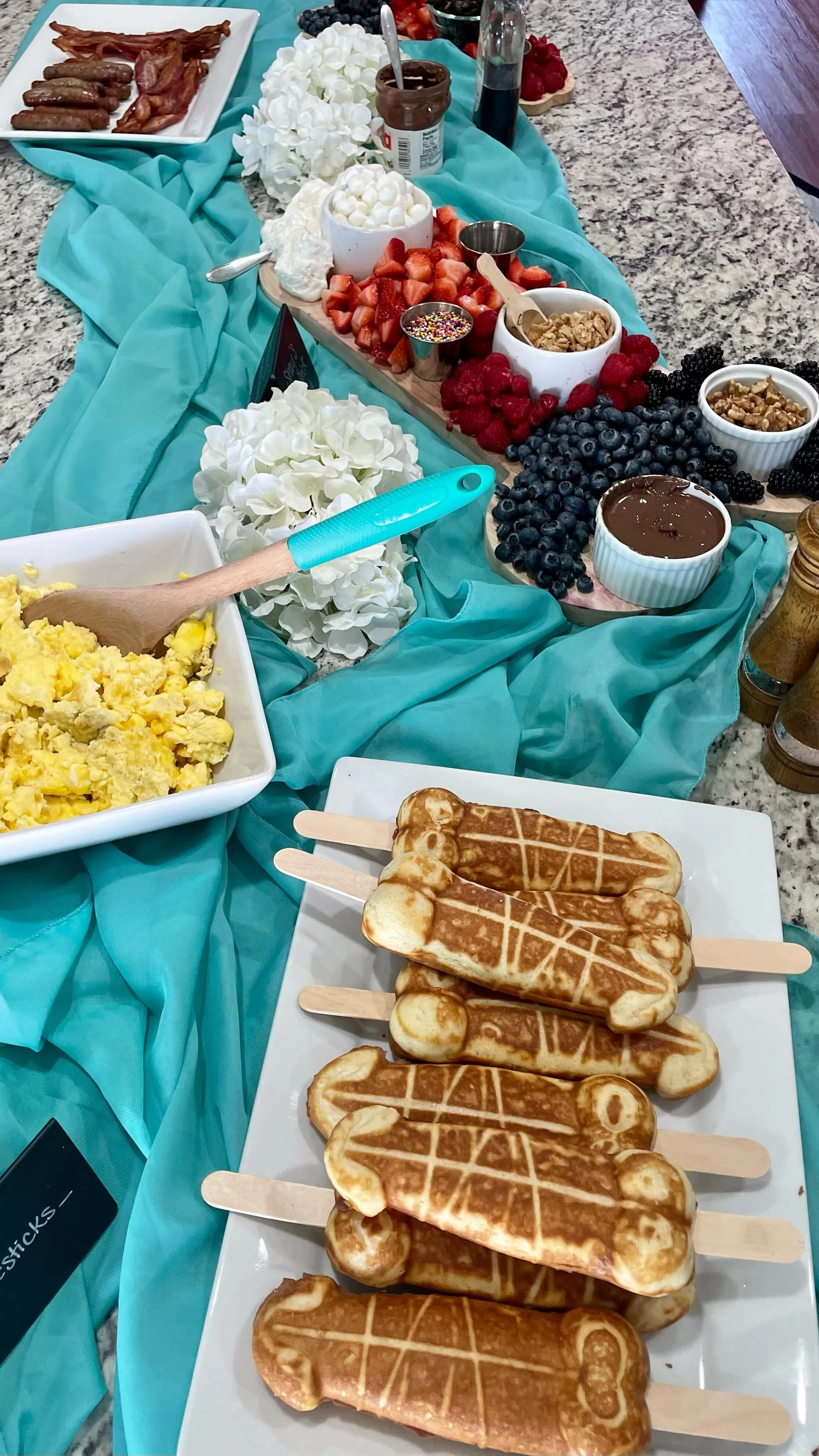 Our Gigglesticks brunch package is the perfect way to spend the morning! Relax, while we do the work in the comfort of your own place. The package includes a Gigglestick waffle for each head, all of our toppings (to make it just the way you like it and featured on our famous cock-cuterie board) eggs, sausage and bacon. The brunch is a hour and a half window and includes everything from set up, to cooking and clean up. Price is $39.00 per head. Minimum 7 people. or the price equivalent.